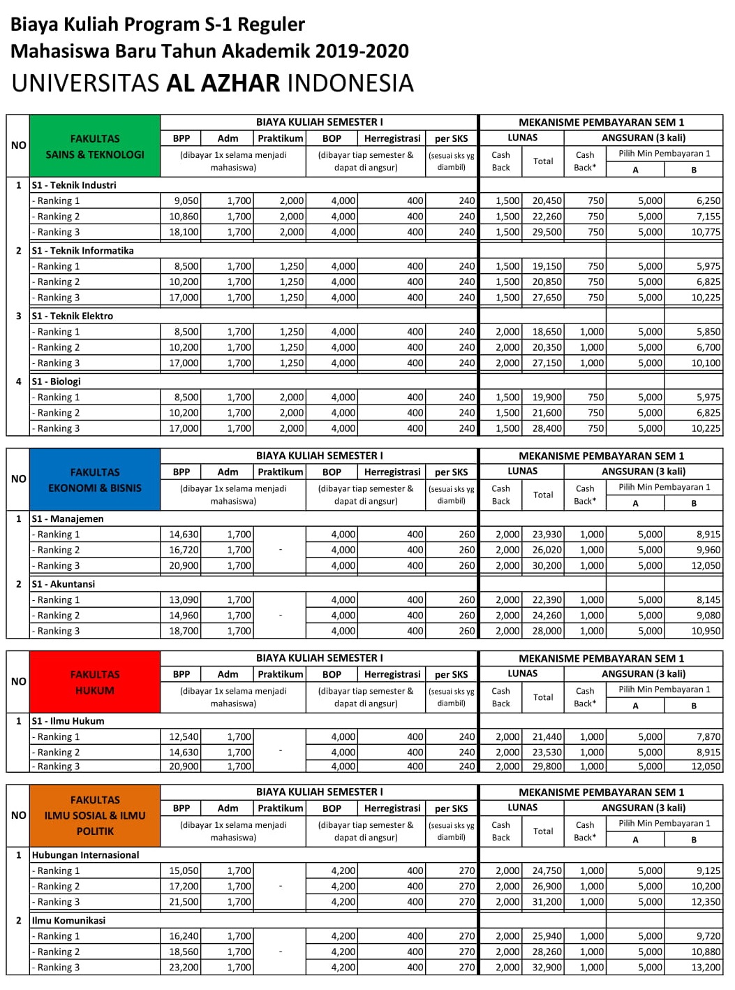 Biaya Kuliah Universitas Al Azhar Tahun 2019 2020 Kuliah Karyawan